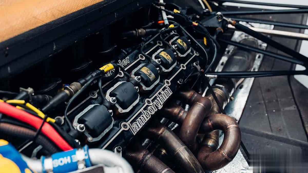 Countach的特别之处:从出厂开始,这辆Countach就采用黄色涂装(据称是唯一一台右舵黄色Countach),其基调与莲花F1的经典涂装完美契合。在最初几年中,它行驶了约25000公里,随后在2000年代中期被纳入收藏。不久前,Furlonger将其从该收藏中购入。随后,这辆兰博基尼接受了技术翻新、重新喷漆,并贴上了骆驼(Camel)赞助与赛车号码涂装据卖家介绍,这些贴膜可完全移除,如买家希望恢复原厂外观。轮圈亦是如此——黑黄配色的O.Z.轮毂也是在改装阶段才安装的。