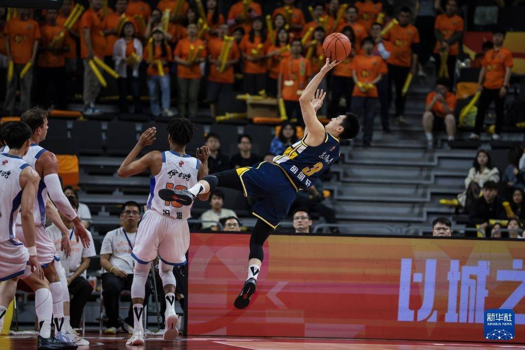 3月17日,广东东阳光队球员胡明轩(右一)在比赛中投篮。